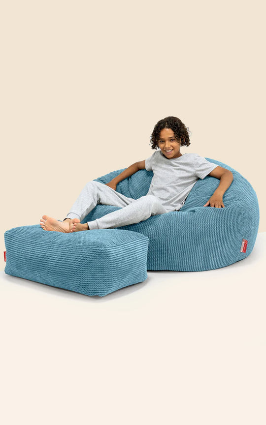 • Snuggle Kæmpe Sækkestol til Børn 3-8 år - Pom Pom Turkis Blå 01