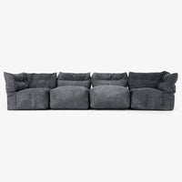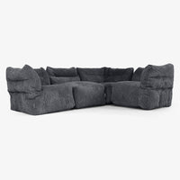 Lounge Pug 4-personers Modulsofa med Chaiselong Klassisk Jernbanefløjl Sort– Big Bertha Original DK