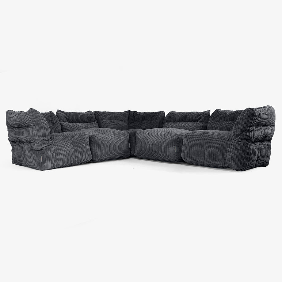 Lounge Pug 5-personers Modulsofa Hjørnesofa Klassisk Jernbanefløjl Sort– Big Bertha Original DK