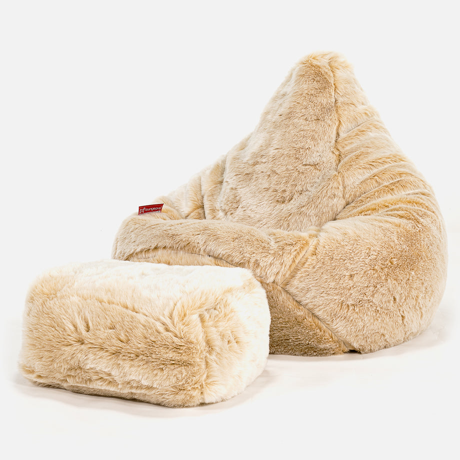 Lounge Pug®, Gamer Sækkestol, Sækkestol med Ryglæn - Falsk Pels Hvid– Big Bertha Original DK